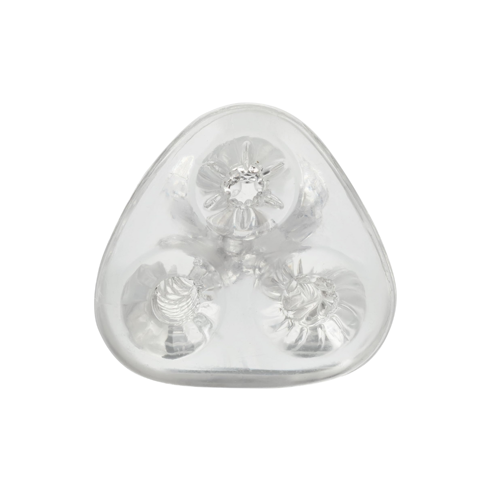 Variety is the spice of life! This sleeve features three different textured chambers that merge into one, for three different thrilling sensations. Also features an open ended design that makes it fun for play together, add a blindfold to the mix, and they won’t know which sensation will stroke next!